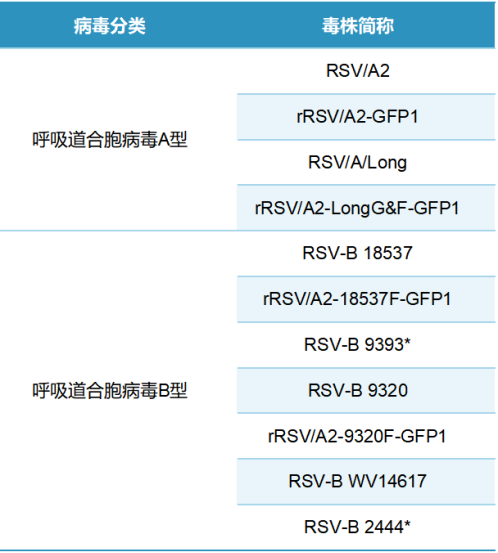 表1.「DIFF CRO」拥有全面广泛的RSV毒株库资源
