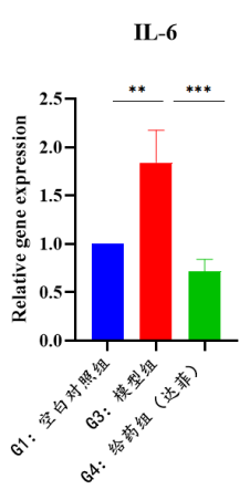 图16.qRT-PCR相对定量方法检测了肺组织中IL-6关键细胞因子的mRNA相对表达量