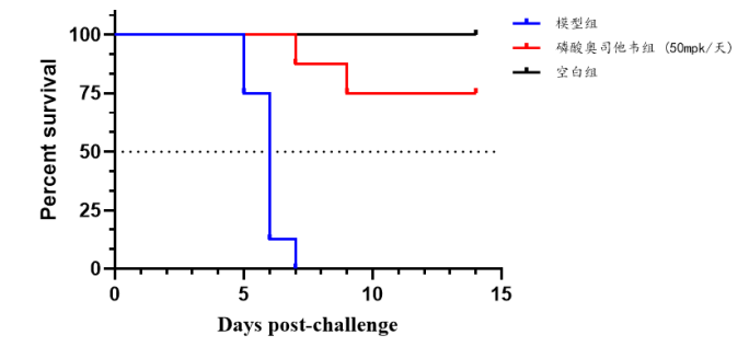图12.小鼠流感攻毒模型(H1N1/PR8)给药后的小鼠存活率情况统计